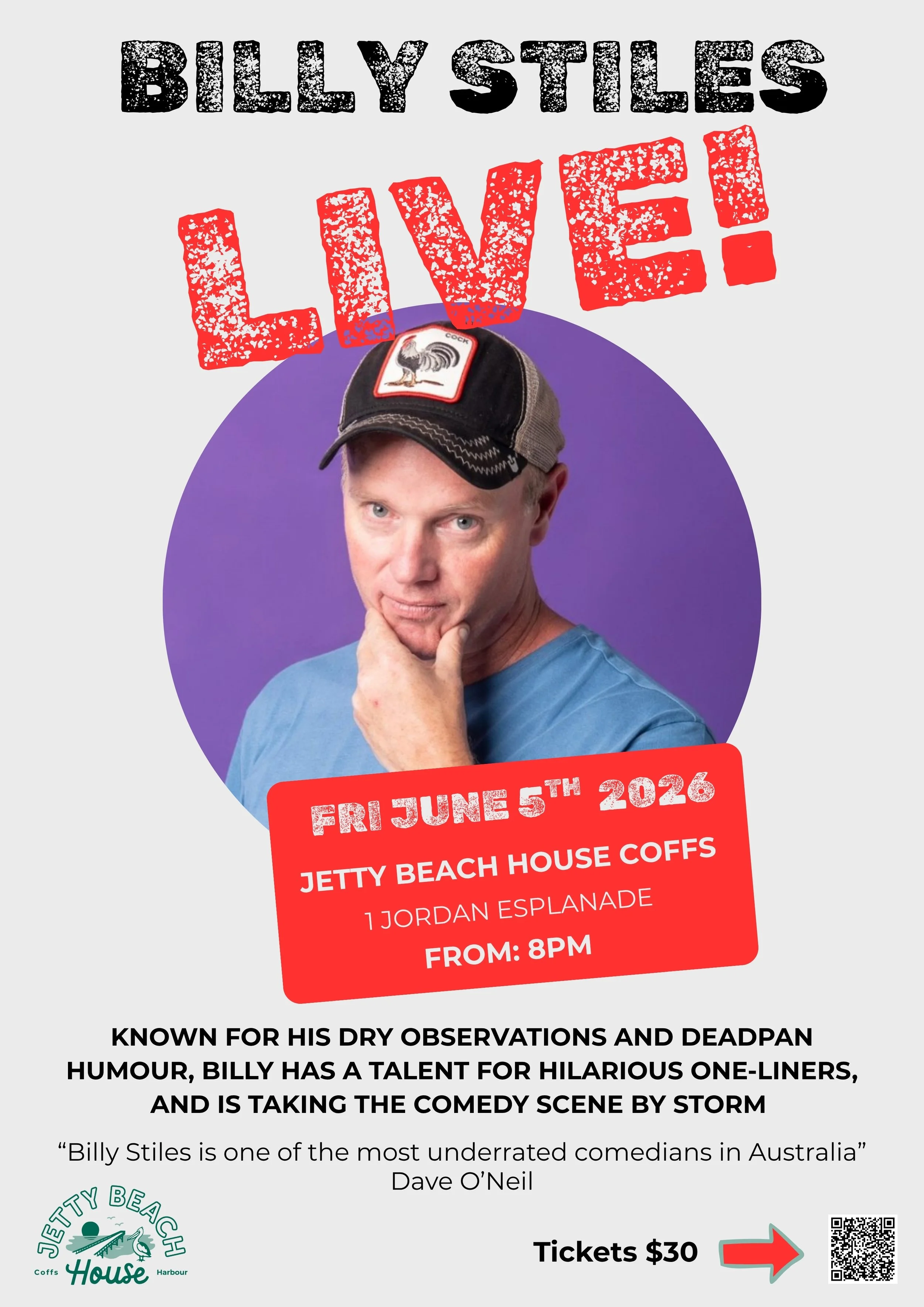 “Billy Stiles is one of the most underrated comedians in Australia” Dave Hughes